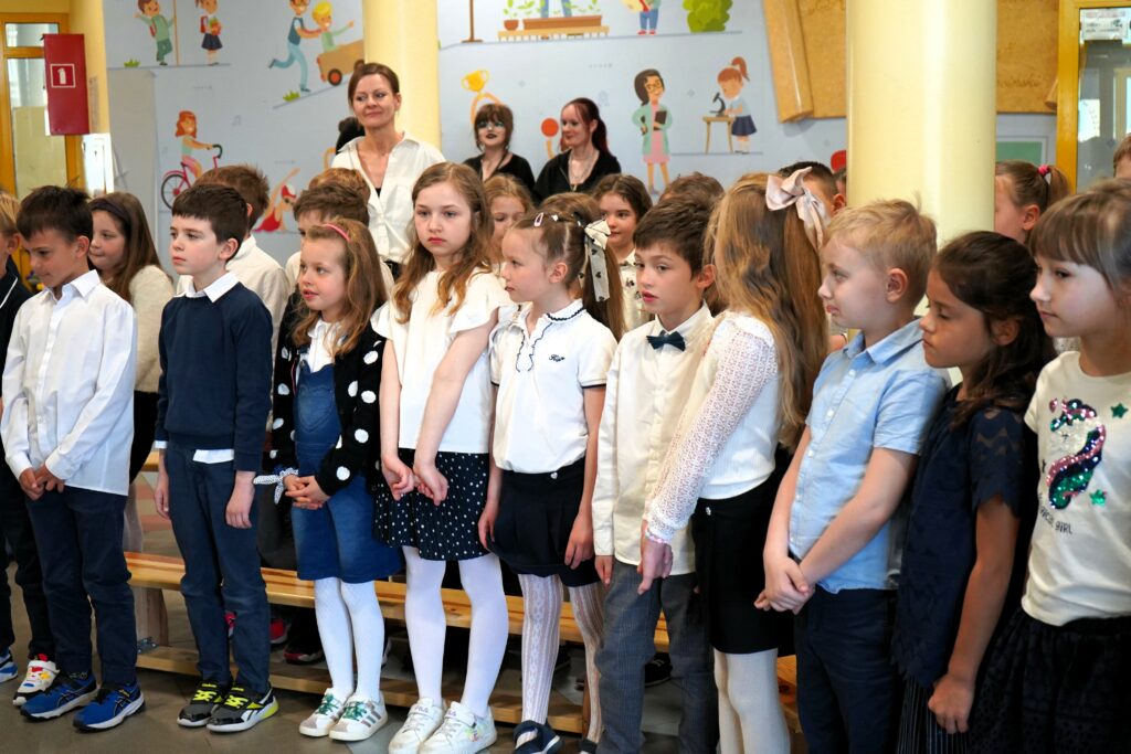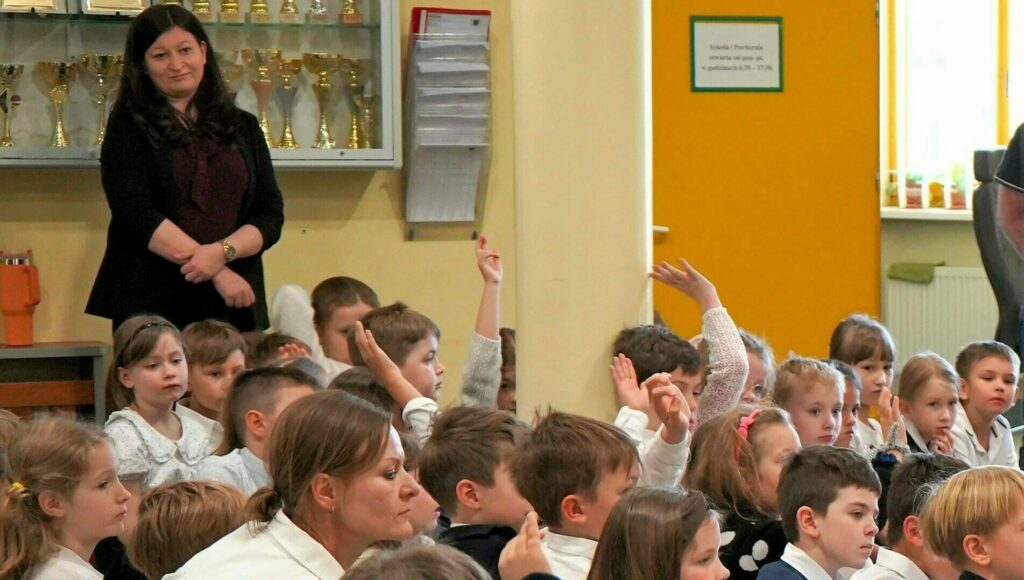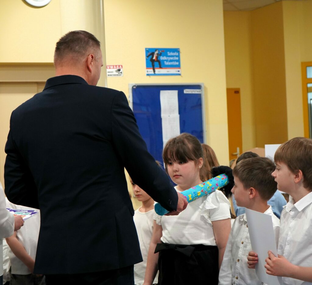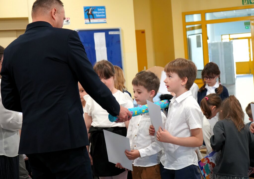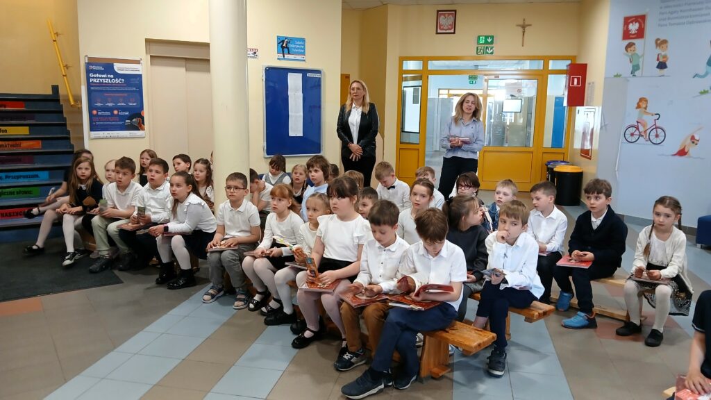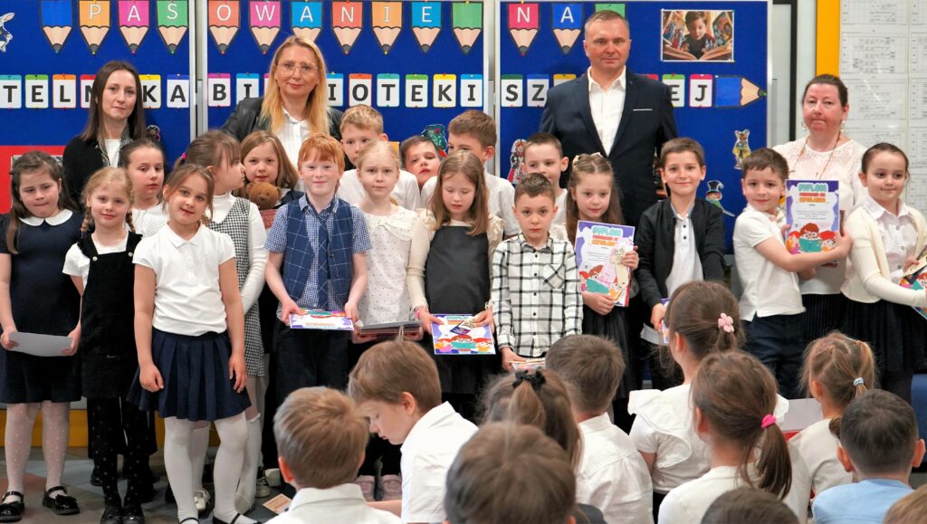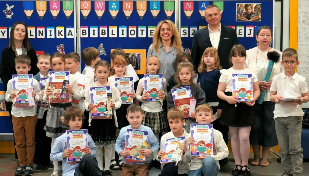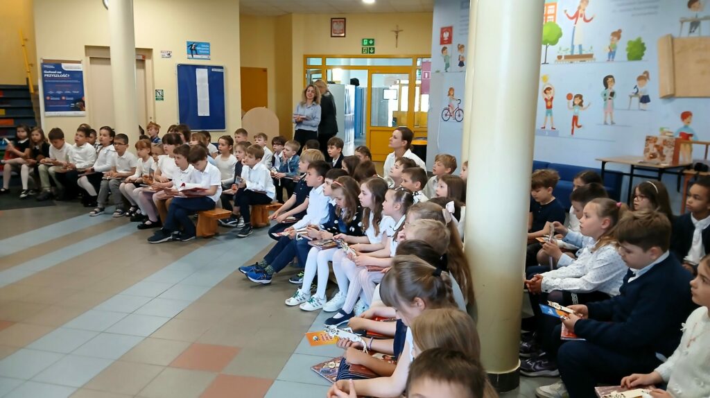 W części artystycznej pierwszoklasiści z entuzjazmem zaśpiewali piosenkę o książkach, które są przyjaciółmi każdego dziecka. Uczniowie bezbłędnie poradzili sobie z zagadkami dotyczącymi bajkowych postaci i wykazali się doskonałą wiedzą na temat zasad korzystania z Biblioteki. Wyjątkowym momentem była recytacja wiersza „Z miłości do książek” w wykonaniu starszych kolegów z klasy 8e, która przypomniała wszystkim o sile wyobraźni.