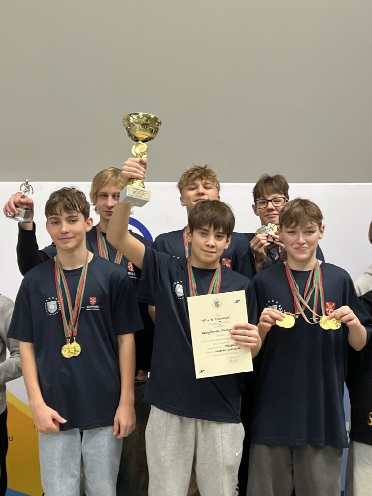 1 mc-e Sztafeta Chłopców 6×50 metrów stylem dowolnym kategoria młodzieży – Grzybczyk Dawid (7b) Kądzielski Franciszek (7b) Mamaj Jan (7b) Szczotkowski Aleksander (7b) Żbikowski Maciej (8b) Dłutowski Ignacy (8b )