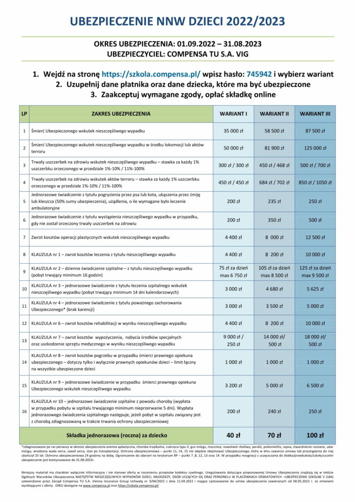 UBEZPIECZENIA NASTĘPSTW NIESZCZĘŚLIWYCH WYPADKÓW