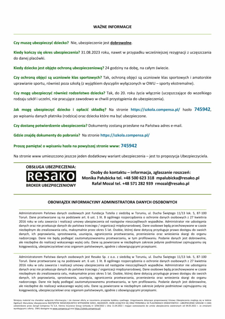- Tytuł przelewu: Przelew na Radę Rodziców – Imię i nazwisko ucznia + klasa