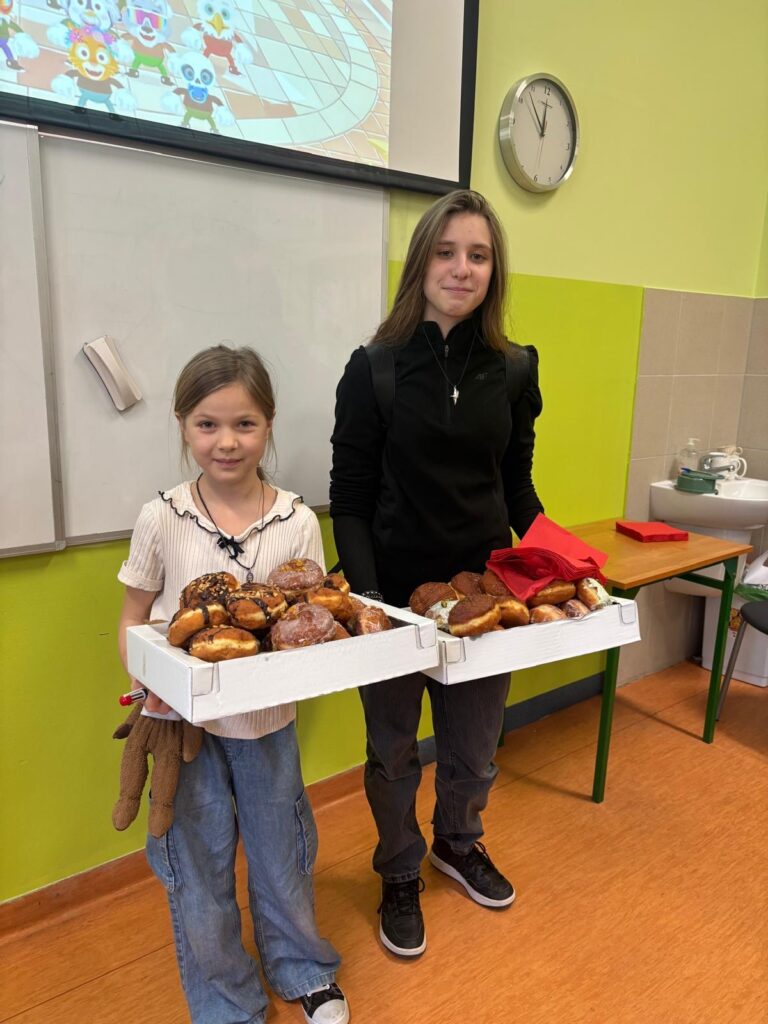 12 lutego w naszej szkole – Tłusty Czwartek upłynął w atmosferze słodkiej zabawy i radosnego świętowania. Z tej okazji Samorząd Uczniowski przygotował quiz dla uczniów klas 1–3 oraz 4–8, dotyczący tradycji związanych z Tłustym Czwartkiem. Uczniowie wykazali się dużą wiedzą i zaangażowaniem. Wśród klas 1–3 zwyciężyła klasa 1a, natomiast wśród klas starszych najlepsza okazała się klasa 8d. Nagrodą w quizie były pyszne pączki dla zwycięskich klas, ufundowane przez Radę Rodziców. Serdecznie dziękujemy Samorządowi Uczniowskiemu za przygotowanie wydarzenia, a Radzie Rodziców za słodką niespodziankę!