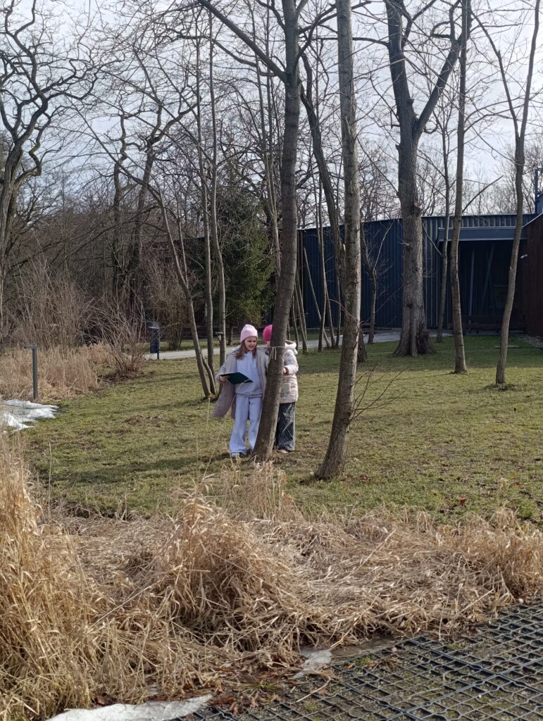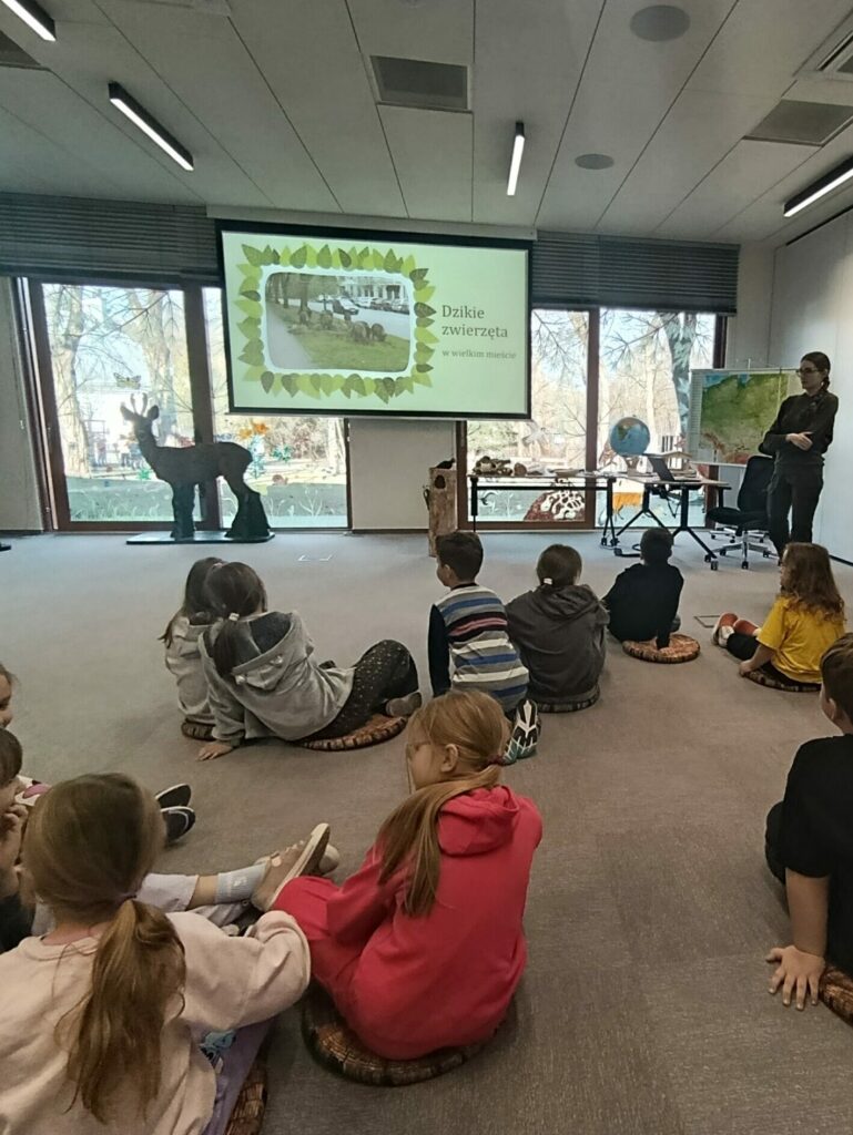 Podczas spotkania dzieci uczestniczyły zarówno w zajęciach stacjonarnych, jak i terenowych. Dowiedziały się, jakie zwierzęta można spotkać w mieście, jak radzą sobie po zimie oraz w jaki sposób możemy im pomagać i dbać o ich środowisko.