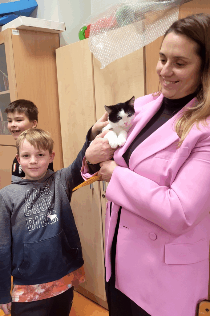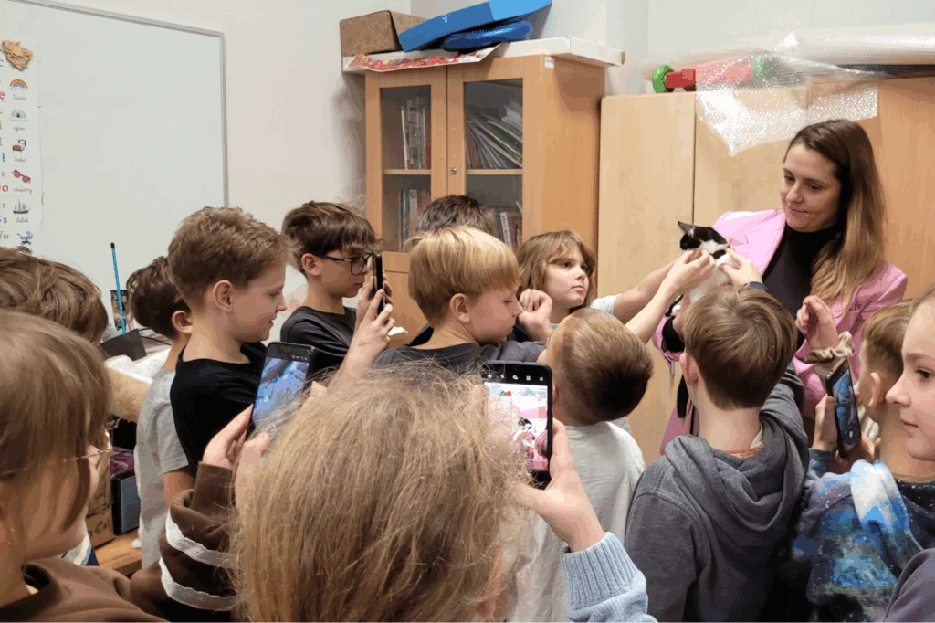 Podczas wydarzenia uczniowie poznali nie tylko historię Pączusia, ale również dowiedzieli się, jak właściwie dbać o koty – zarówno te domowe, jak i wolno żyjące. Zyskali także wiedzę, gdzie szukać pomocy w sytuacji znalezienia potrzebującego zwierzęcia oraz zapoznali się z celami i działalnością Fundacji. Uczniowie zadawali wiele pytań, co sprawiło, że spotkanie było bardzo interesujące.